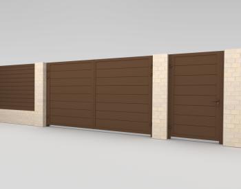 Для распашных ворот, помимо сэндвич-панелей, есть возможность изготовить заполнение из любых материалов: металлического штакетника, сетки, деревянных досок и других.